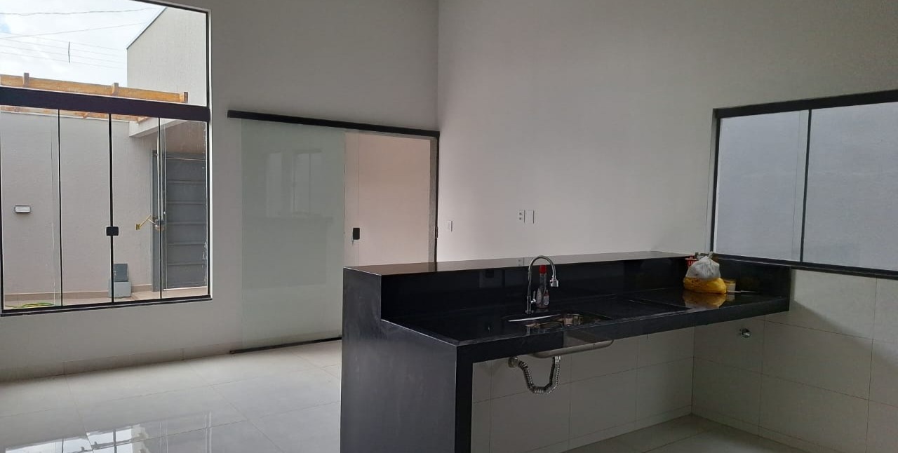 Composta por 3 quartos sendo um deles uma Suíte Master com closet, um banheiro social, sala e cozinha amplas e garagem para 01 veículo. Na área externa possui uma edícula com churrasqueira, lavabo e área de serviço. Piso em porcelanato, banheiros de fino acabamento e teto em laje.